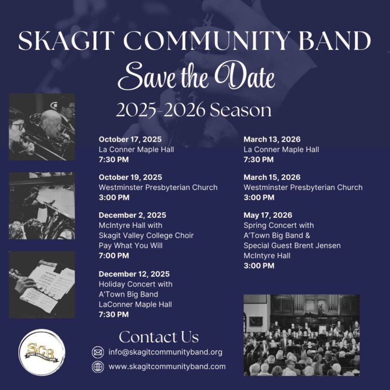 Admission: Free and open to the public. Donations are always welcome and support our mission of sharing music with the Skagit community.